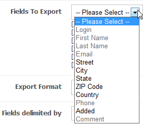 In the "Fields to Export" field, click on the arrow button and select the first field to export from the list of available fields.