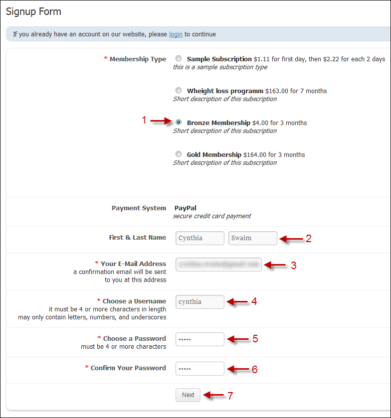 - User enters their preferred username. Note that many requirements of the user's username can be configured in aMember.